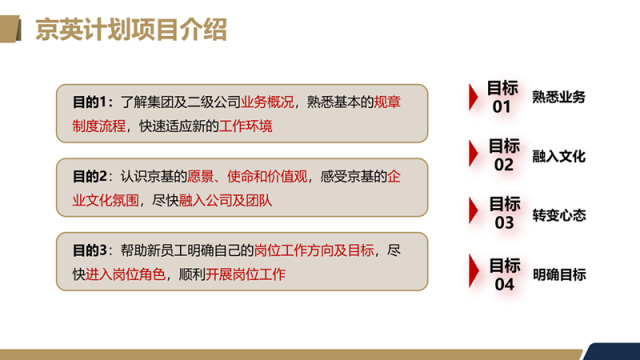 Kingkey Group's "Jingying Program" is launched in order to further standardize the training management of the new social employees recruited by the Group and the subsidiaries and help the new employees become fully familiar with the business of the Group and the subsidiaries, gain an in-depth understanding of the vision, mission and values of the Group, and understand more clearly the position development direction and goal so that they soon fit into the company and get into and become competent for their positions.